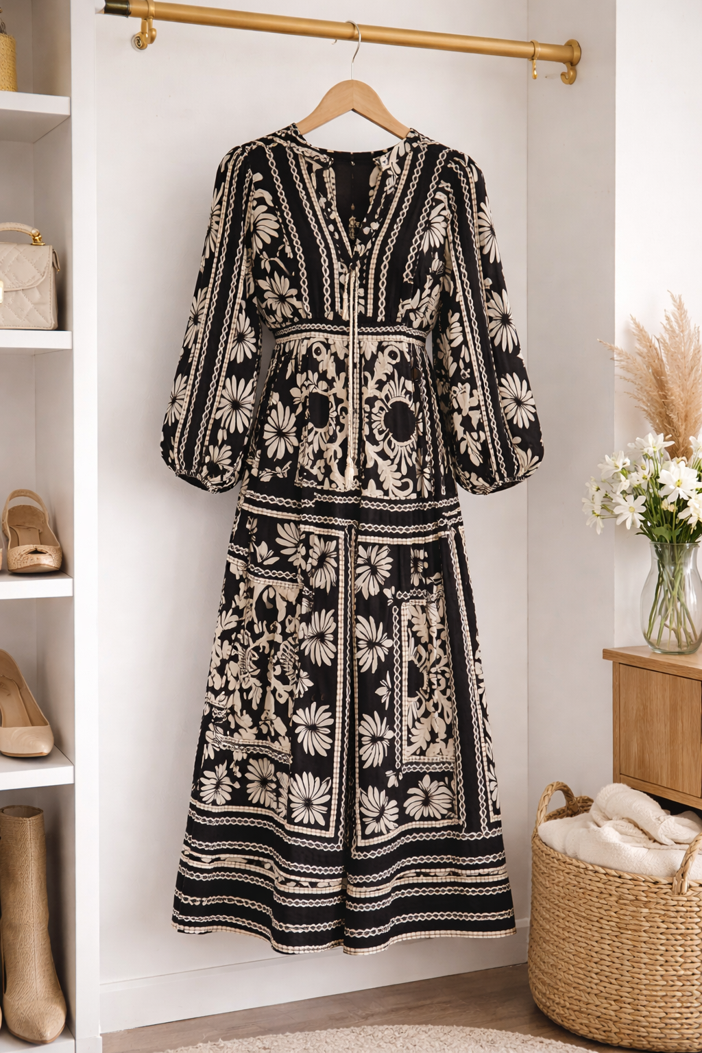 Zara Breezy Floral Maxi Gown – Black & White Modest Dress
