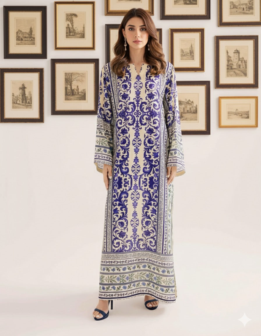 MIDNIGHT KAFTAN COMES IN GEORGETT MATERIAL WITH DIGITAL PRINTS DONE.LINING IS PROVIDED. SIZES M L XL...
