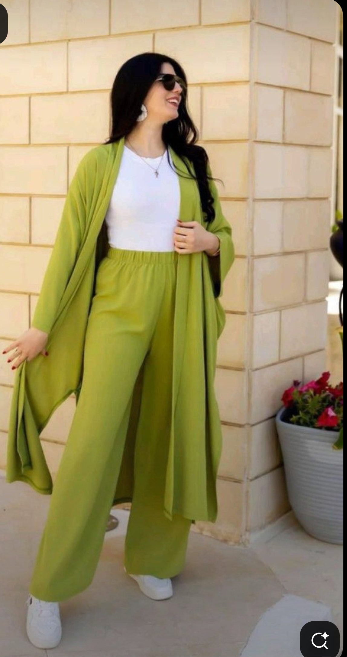 THREE PIECE SET:INNER IN RAYON (WHITE),CARDIGAN AND PANTS IN DIFFERENT COLORS